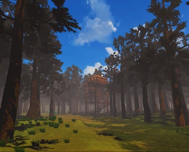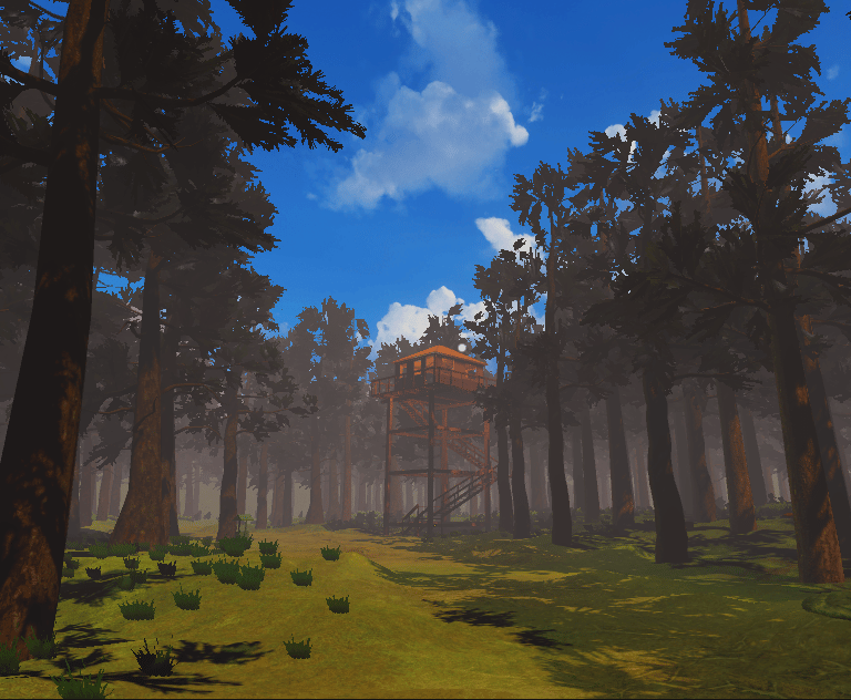 Tranquility is my bachelor’s degree project—a calm, exploration-focused game set in the heart of a quiet forest. The player begins inside their tower, where they can freely interact with their surroundings: examining objects, picking up belongings, and getting familiar with the space.