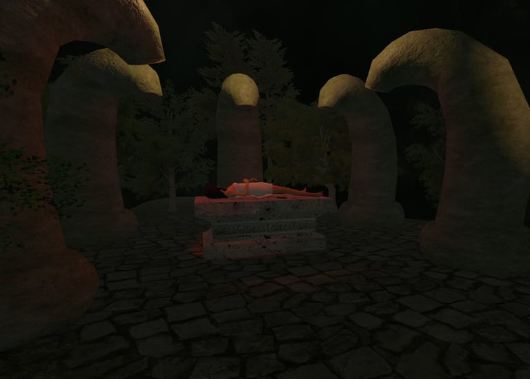 This project is based on the short story "The Call of Cthulhu" by H.P. Lovecraft from 1928. It reflects our interpretation of a scene from the story where a police force stumbles upon cultists in a swamp. This is not meant to be a direct re-creation of the scene, but it is rather meant to convey the atmosphere.